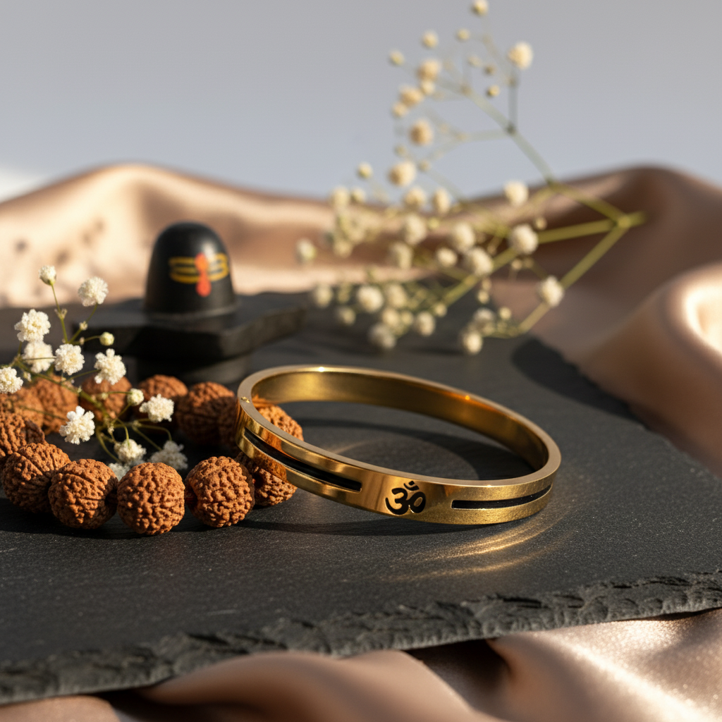 Divine "Aum" Kada | Gold-Tone Spiritual Bracelet